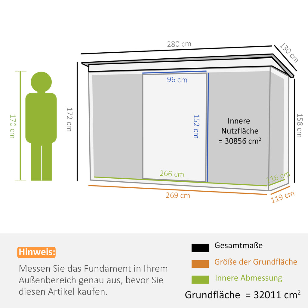- Hinweis: Messen Sie das Fundament in Ihrem Außenbereich genau aus, bevor Sie diesen Artikel kaufen