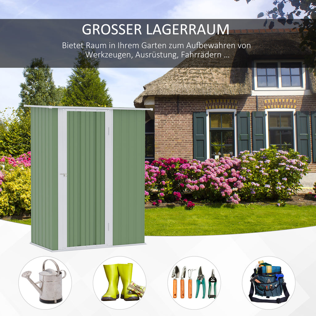 Outsunny Gerätehaus Gartenhaus Geräteschuppen mit Tür Outdoor Stahl Grün 142 x 84 x 189 cm