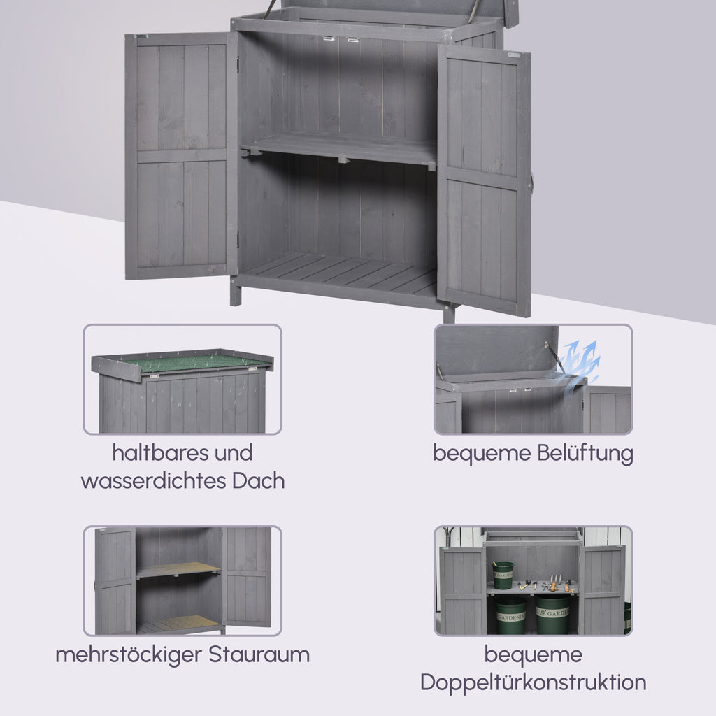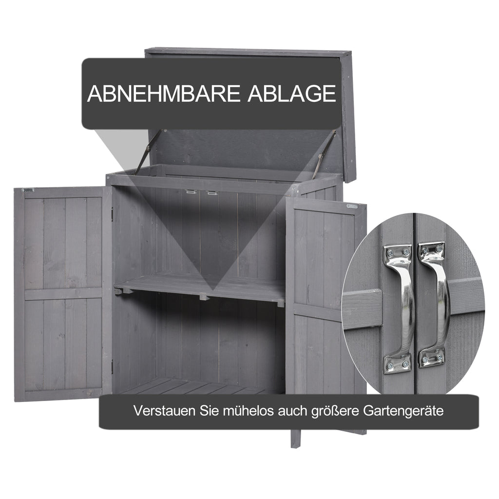 Outsunny Geräteschrank, Doppeltür, Klappdeckel, 2 Regalfächer, wetterfest, Naturholz, grau, 74 x 43 x 88cm