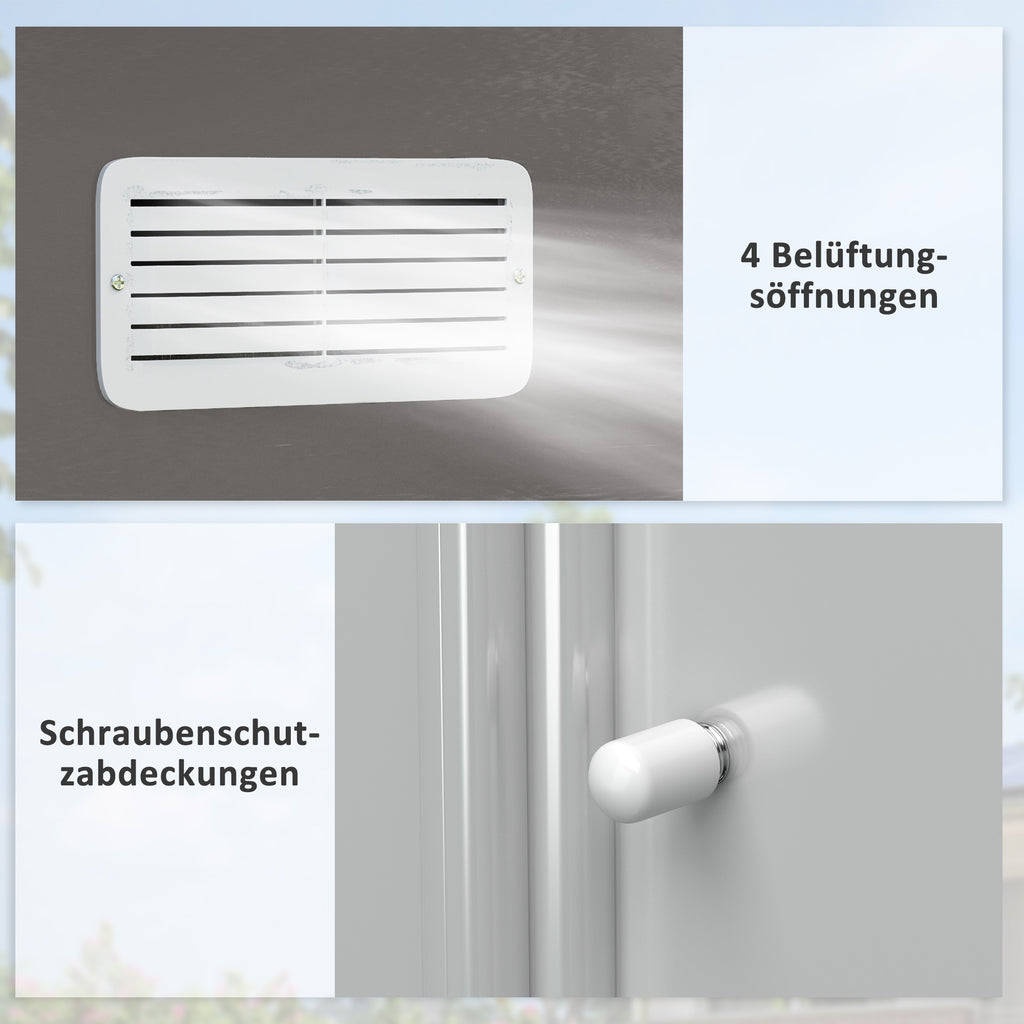 Sie haben noch keinen Gartenschrank für Ihre Gartenutensilien? Dann ist diese Gartenhütte von Outsunny die ideale Lösung! Der Fahrradschuppen besteht aus einer soliden Konstruktion aus Metall, welche robust und wetterbeständig ist. Zwei Schiebetüren des Gartenschuppens erleichtern den Zutritt, während zwei Fenster an Vorder- und Rückseite für ausreichend Licht sowie eine angenehme Belüftung sorgen.
