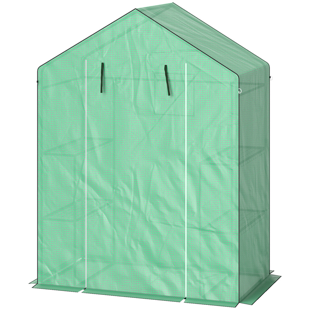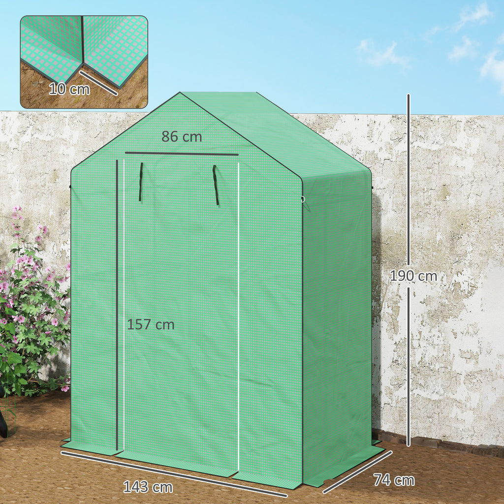 Schluss mit der Sorge um Ihre liebevoll gepflegten Pflanzen! Outsunnys begehbares Gewächshaus mit integriertem Pflanzenständer ist die ideale Lösung für Hobbygärtner. Die UV-beständige Kunststoff-Abdeckung mit hochrollbarer Tür und zwei Netzfenstern des Tomatenhauses reguliert Temperatur und Feuchtigkeit optimal. Durch anpassbare Drahtpaneele des Foliengewächshauses lässt sich der Innenraum zudem je nach Pflanzenhöhe flexibel gestalten.
