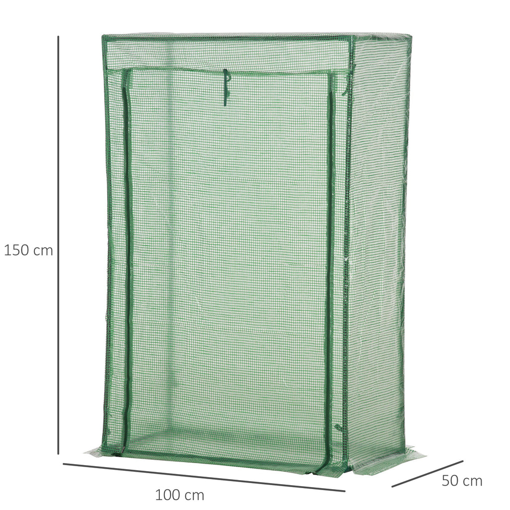 Outsunny Gewächshaus mit Tür, winterfest Foliengewächshaus aus Stahl, Treibhaus für Balkon, Garten, Tomatenhaus 100x50x150cm, Tomatengewächshaus für Tomaten, Gemüse, Blumen, Pflanzen, Grün