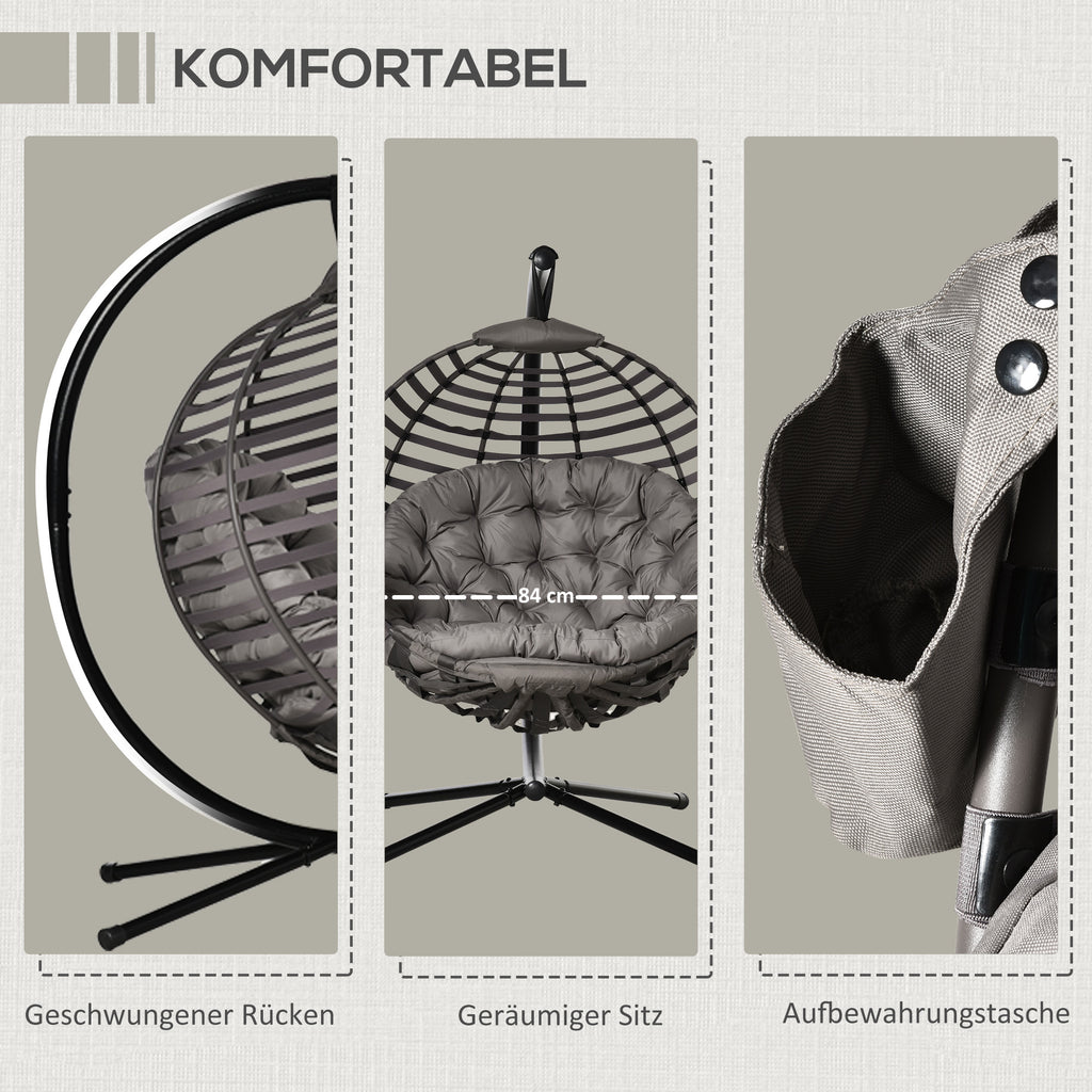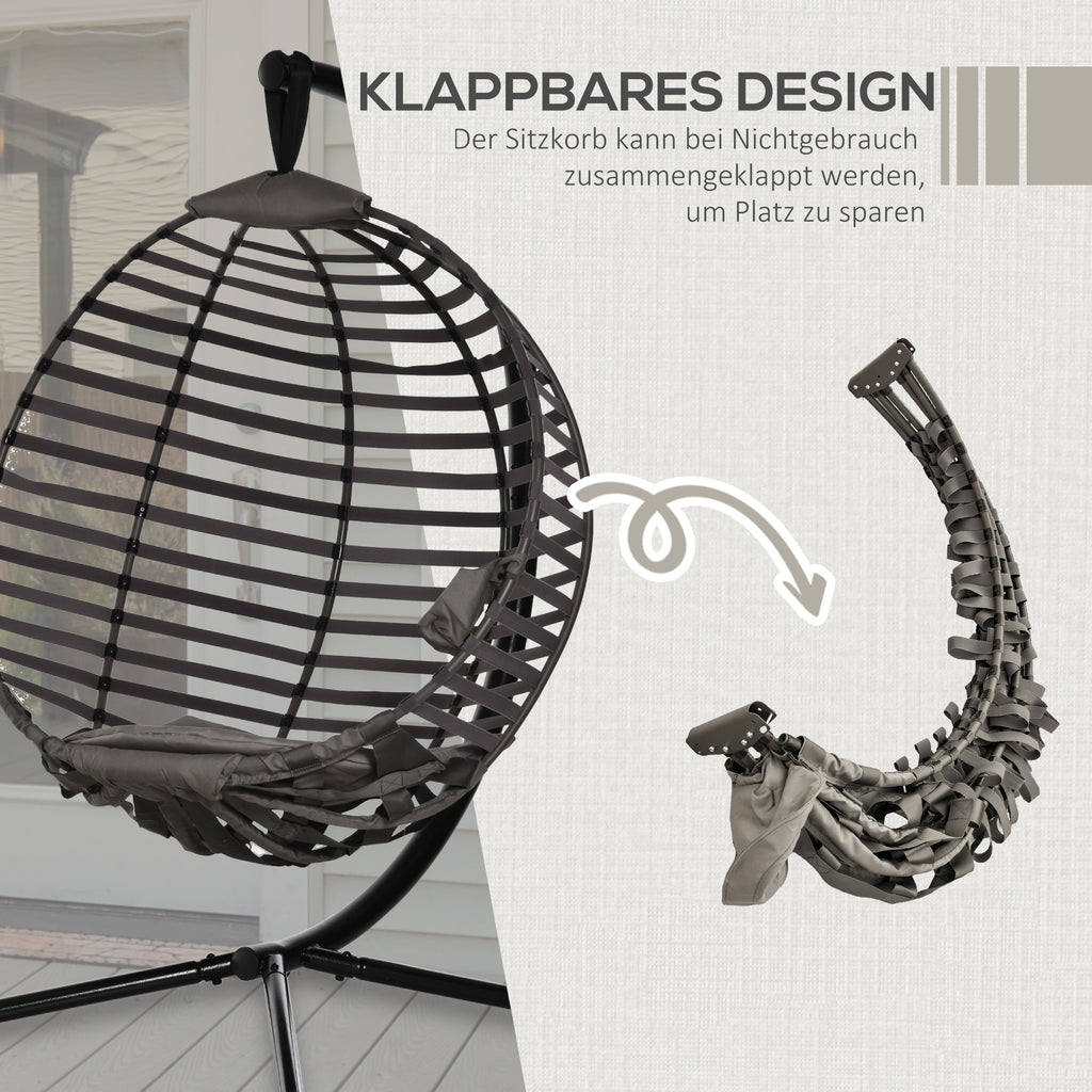 Verbringen Sie den Tag wie auf Wolken in diesem Hängesessel von Outsunny! Die geschwungene Rückenlehne, die geräumige Sitzfläche und das weiche Kissen bieten ein ausgesprochen komfortables Sitzerlebnis. Das Gestell ist aus Stahl gefertigt und kann bis zu 120 kg tragen, sodass Sie ihn sorgenfrei nutzen können. Der faltbare Sitzkorb erlaubt eine platzsparende und bequeme Verstauung. Verschönern Sie Ihren Innen- oder Außenbereich mit diesem markanten Design-Sessel.