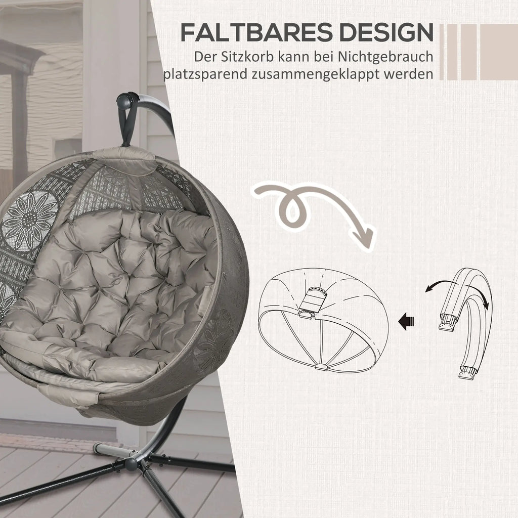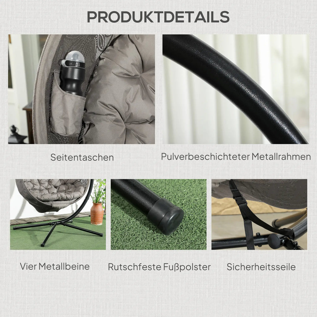 Machen Sie das Beste aus Ihren faulen Tagen mit diesem hängenden Eiersessel von Outsunny. Die geschwungene Rückenlehne, die geräumige Sitzfläche und das weich gepolsterte Kissen bieten ein bequemes Sitzerlebnis. Der Hängesessel ist bis zu 120 kg belastbar, so dass Sie und Ihre Lieben ganz beruhigt darauf sitzen können. Mit dem klappbaren Sitzkorb lässt er sich platzsparend und praktisch verstauen. Bringen Sie mit unserem hängenden Gartenstuhl mühelos Eleganz in Ihre Innen- und Außenbereiche.