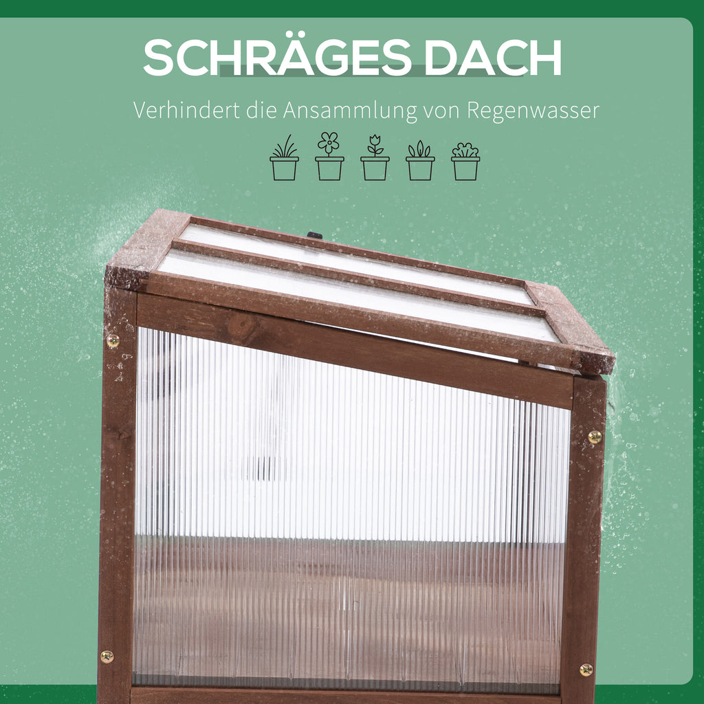 Dieses Holzgewächshaus von Outsunny mit einfachem und rustikalem Aussehen ist die perfekte Wahl für Sie, um sich um Ihre Pflanzen zu kümmern. Transparente Frühbeet ermöglichen maximale Lichtdurchlässigkeit bei gleichzeitiger Wärmespeicherung für die frühe Keimung von Samen oder zum Schutz von Pflanzen in der späten Saison. Dieses Tomatenhaus bietet eine Umgebung mit idealer Temperatur, Ihre Pflanzen können das Sonnenlicht genießen und gesund wachsen.