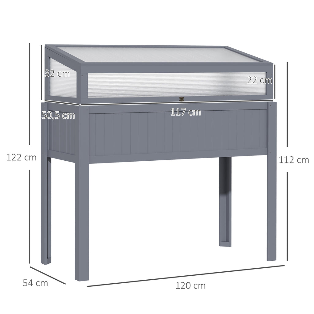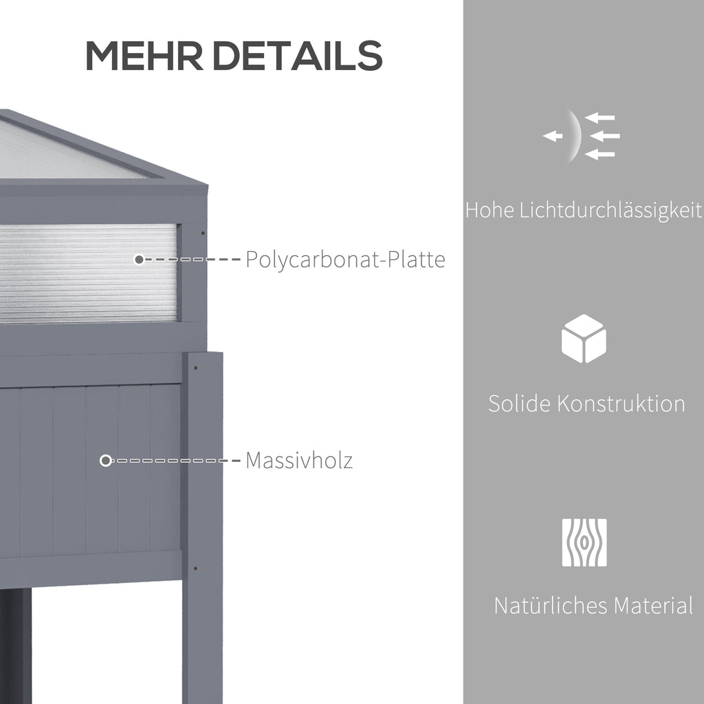Dieses 2-in-1-Gewächshaus von Outsunny bietet einen wunderbaren Platz für Ihre Blumen, Pflanzen und Kräuter. Je nach Bedarf können Sie dieses Hochbeete für Garten als praktische Kombination oder auch separat nutzen. Der stabile Rahmen besteht aus robustem Tannenholz und ist mit einem Gehäuse aus transparenten Polycarbonatplatten ausgestattet, die die Sonne durchlassen und die Wärme im Inneren des Gewächshauses speichern. Erhöhte Beine sorgen zudem für eine angenehme, rückenschonende Arbeitshöhe.