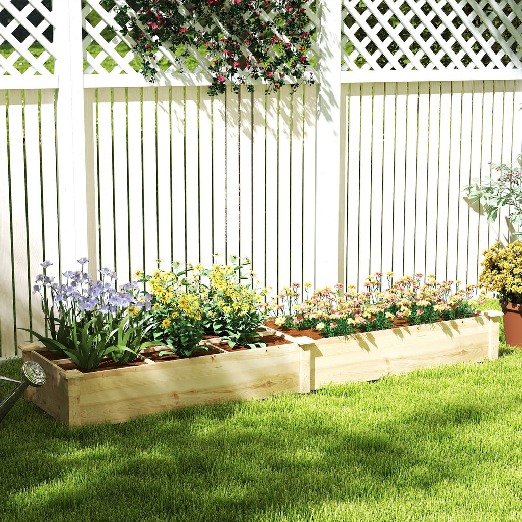 Outsunny Hochbeet, Pflanzkasten, 2-teilig, offener Boden, Naturholzrahmen, einfache Montage, 237 x 60 x 25cm