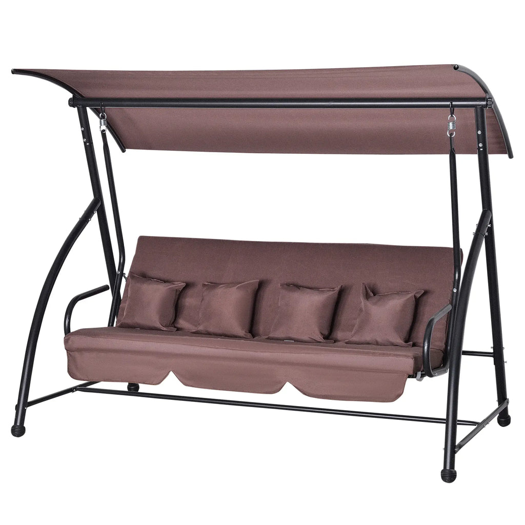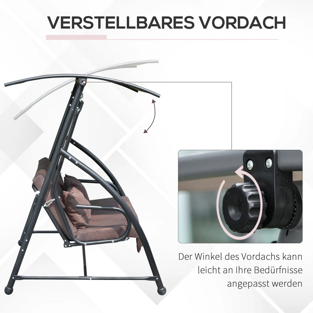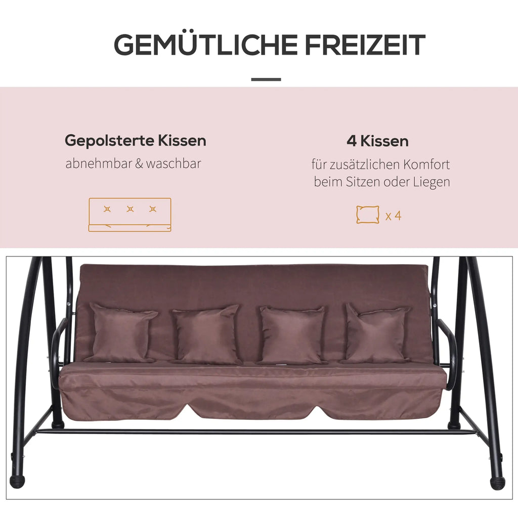 Mit dieser Gartenschaukel für Erwachsene von Outsunny kann der Sommer kommen. Diese 2-in-1 Schaukel lässt sich ganz einfach in eine große Liege verwandeln. Die großzügige Polsterung und zusätzliche Kissen sorgen für viel Sitzkomfort. Robuste Federn und ein stabiles Metallgestell ermöglichen ein sanftes Schaukeln und bieten eine hohe Stabilität. Das integrierte Dach schützt sie zudem vor heißer Sonne und schädlichen UV-Strahlen. Genießen Sie den Sommer in vollen Zügen mit dieser 3-Sitzer Hollywoodschaukel von Outsunny.