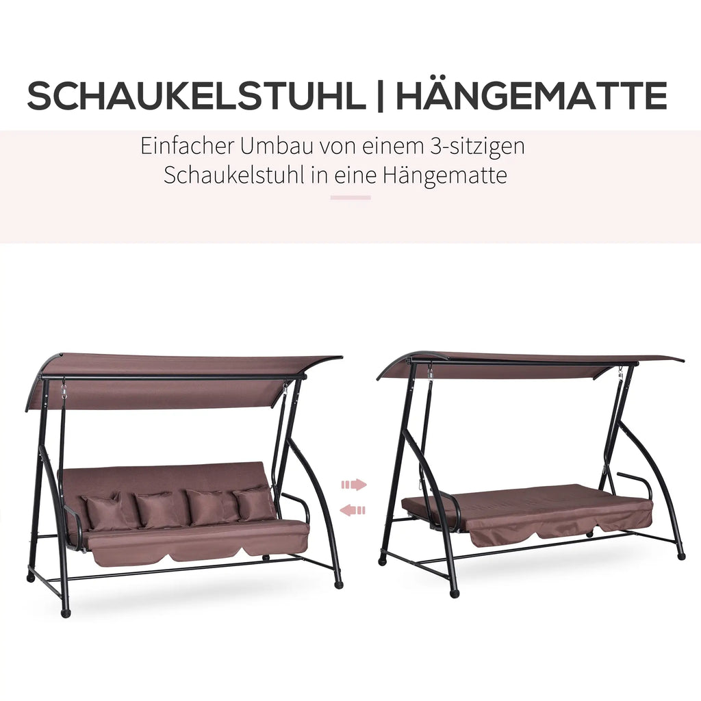 - ✔ 3-Sitzer-Hollywoodschaukel verwandelt sich in Sekundenschnelle in ein bequemes Bett