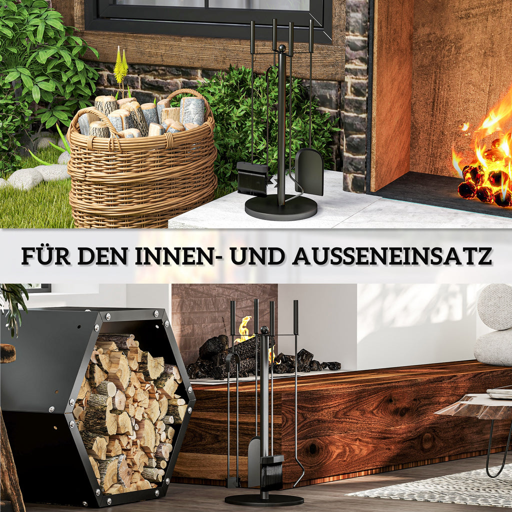- Fünfteiliges Set umfasst Besen, Schaufel, Zange, Schürhaken und einen stabilen Ständer