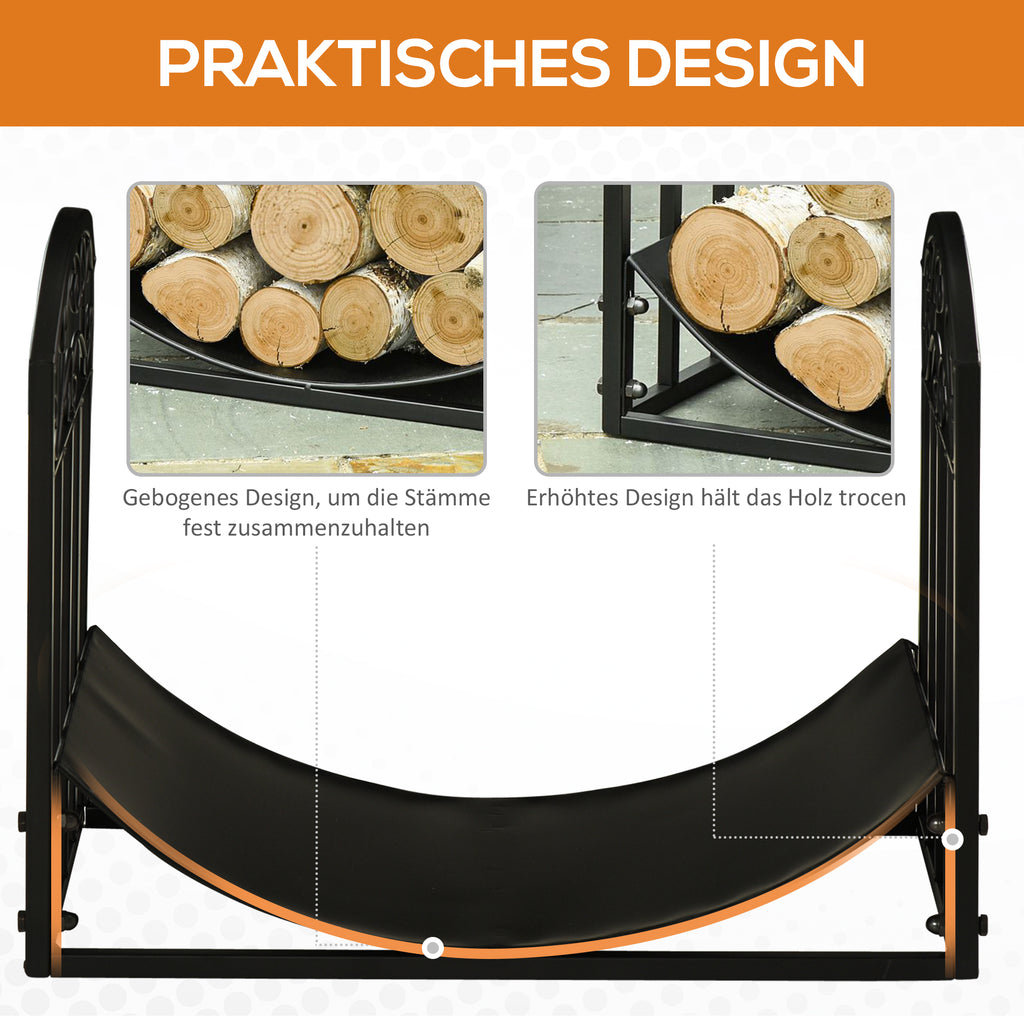 Dieses stilvolle und praktische Kaminholzregal von Outsunny hilft Ihnen, Ihr Brennholz immer griffbereit zu haben, wenn Sie es brauchen, was perfekt für die Terrasse, den Garten, den Hof oder im Haus neben dem Kamin ist. Es bietet eine ideale Möglichkeit, Ihre Holzscheite zu organisieren und zu lagern. Das geschwungene Design hält das Holz kompakt und sicher zusammen, das erhöhte Design hält Ihr Brennholz trocken und sorgt dafür, dass Ihre Scheite nicht auf dem Boden liegen.