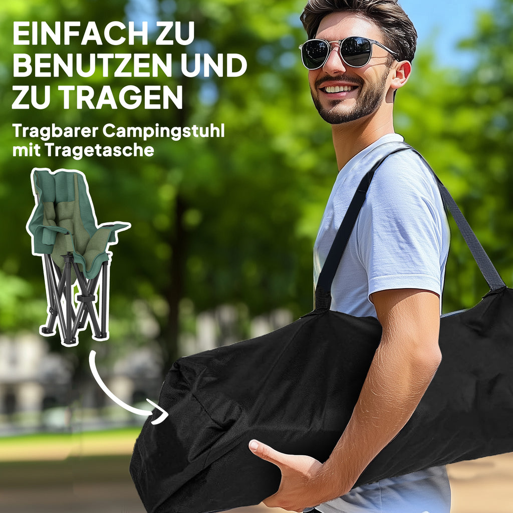 - Doppelte Becherhalter und Seitentaschen des Campingstuhls für Getränke und wichtige Kleinigkeiten