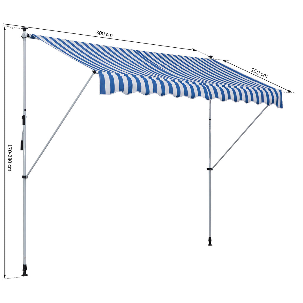 • FLEXIBEL: Mittels der Handkurbel fahren Sie Ihr Sonnendach unkompliziert ein und aus. Die Höhe der Aufstellstangen ist zwischen 1,7 - 2,8 m verstellbar, sodass Sie Ihre freistehende Markise flexibel platzieren können.