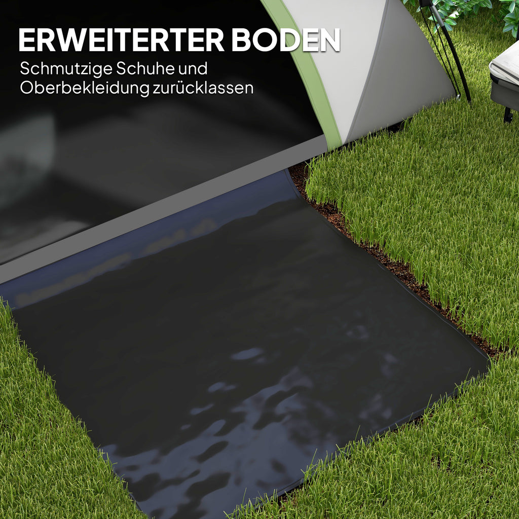Erleben Sie sicherere Campingausflüge mit dem Outsunny Zwei-Personen-Campingzelt. Die Stoffhülle des Festivalzelts schützt mit 3000mm Regenabweisung, ideal für wechselhaftes Wetter. Frische Luft garantiert das Netzfenster, eine große Tür des Kuppelzelts erleichtert den Einstieg. Inklusive vorderer Bodenplatte für schmutzige Schuhe, 10 Bodenheringe, 4 Abspannseile und eine Tragetasche.