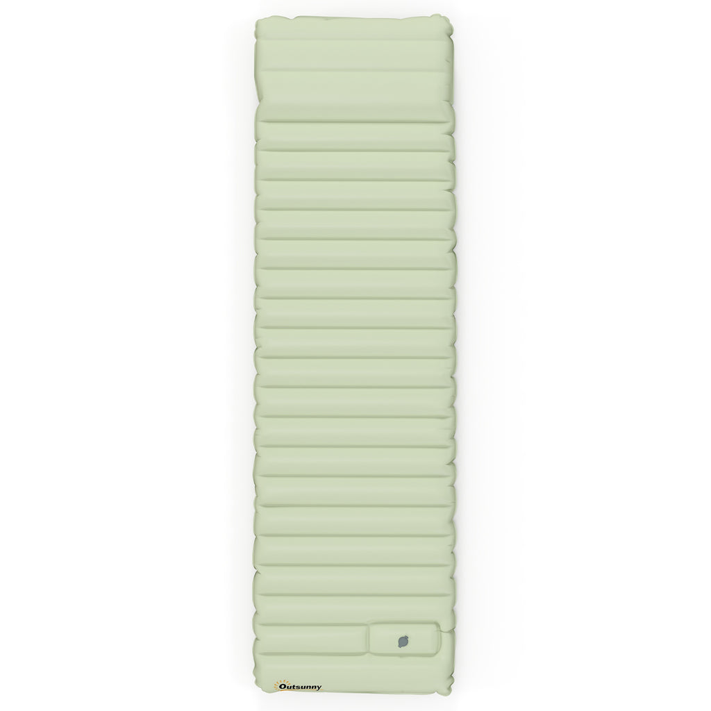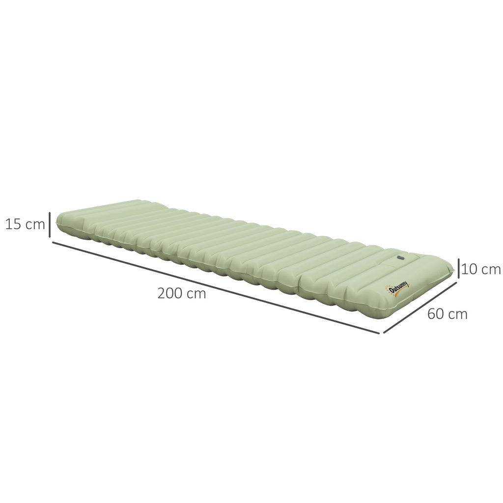 Stürzen Sie sich in die Natur mit der aufblasbaren Campingmatratze von Outsunny, Ihrem treuen Begleiter bei Outdoor Abenteuern. Mit einer Breite von 60 cm und Höhe von 10 cm sorgt die Luftmatratze für traumhaft bequeme, erholsame Nächte. Sie ist zudem wasserdicht, reiß- und stichfest. Mit der mitgelieferten Fußpumpe ist die Matratze in nur 5 Minuten komplett aufgepumpt. Morgens lässt sie sich das Leichtgewicht von nur 0,9 kg kompakt zusammenrollen und in der Tragetasche verstauen.