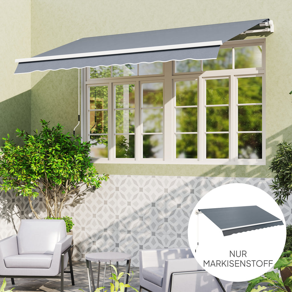 Outsunny Markisenbespannung Markisenstoff mit Volant Wasserabweisend Ersatzstoff für 4 x 3 m Markisen Grau