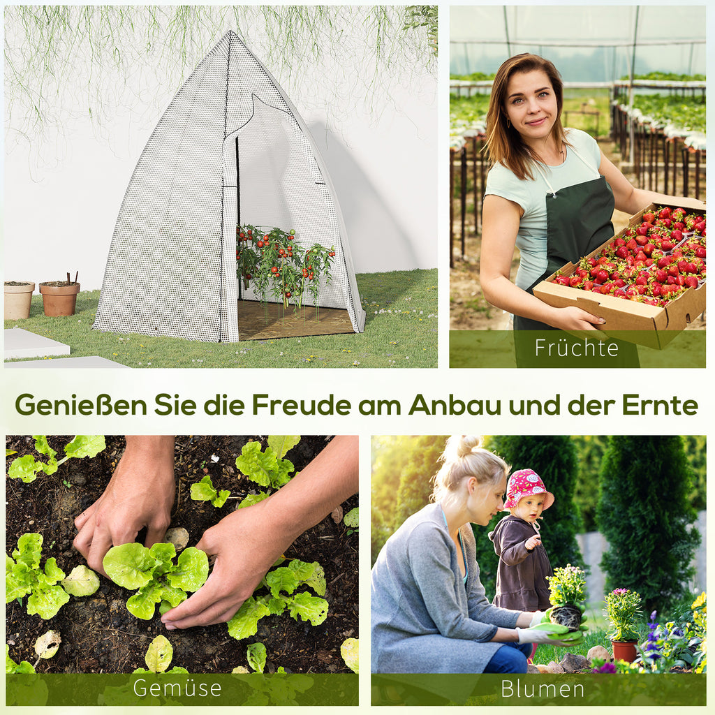 Als jemand, der leidenschaftlich gärtnert, bekommen Sie mit diesem Gewächshaus von Outsunny die Chance, Ihrem Lieblingshobby das ganze Jahr über nachzugehen! Das Gewächshaus besteht aus einem stabilen Metallrahmen und einer robusten Kunststoffabdeckung, die Ihre Pflanzen vor Kälte und Vögeln schützt. Die aufrollbare Tür ermöglicht einen einfachen Zugang und mithilfe des Fensters können Sie eine optimale Belüftung sicherstellen. Nun steht Ihrer Lieblingsbeschäftigung nichts mehr im Wege!