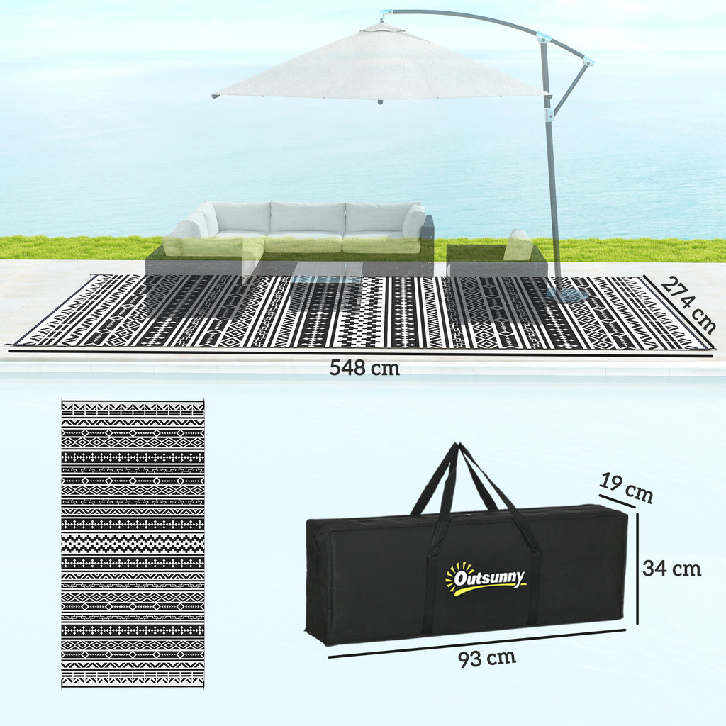Mit Outsunny auf dem wetterfesten Outdoorteppich campen. Dieser Verandateppich wurde entwickelt, um Schmutz abzuweisen. Der Balkonteppich ist outdoor-geeignet und einfach zu reinigen: Kehren, spritzen, wischen oder ausschütteln; die robusten Polypropylenfasern bleiben trocken und nehmen keine Feuchtigkeit auf. Ideal für den Einsatz im Wohnmobil, RV oder Auto; perfekt für Camping, Strandausflüge, Picknicks auf der Terrasse oder andere Outdoor-Aktivitäten. Die Farbe des Balkonteppichs ist reversibel, sodass Sie ihn für einen frischen Look einfach umdrehen können. Gestalten Sie Außenbereiche stilvoll mit Outsunny.