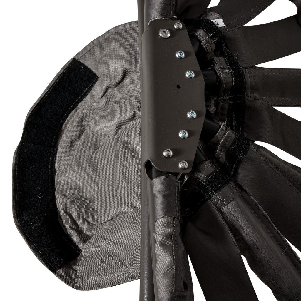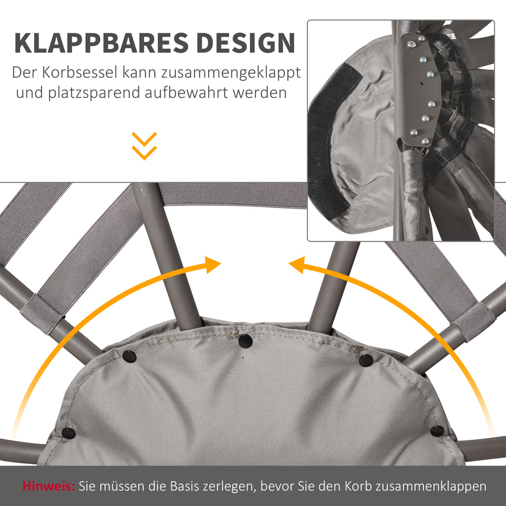 - Hinweis: Die Standbasis muss vor dem Falten des Korbsessels abgebaut werden.