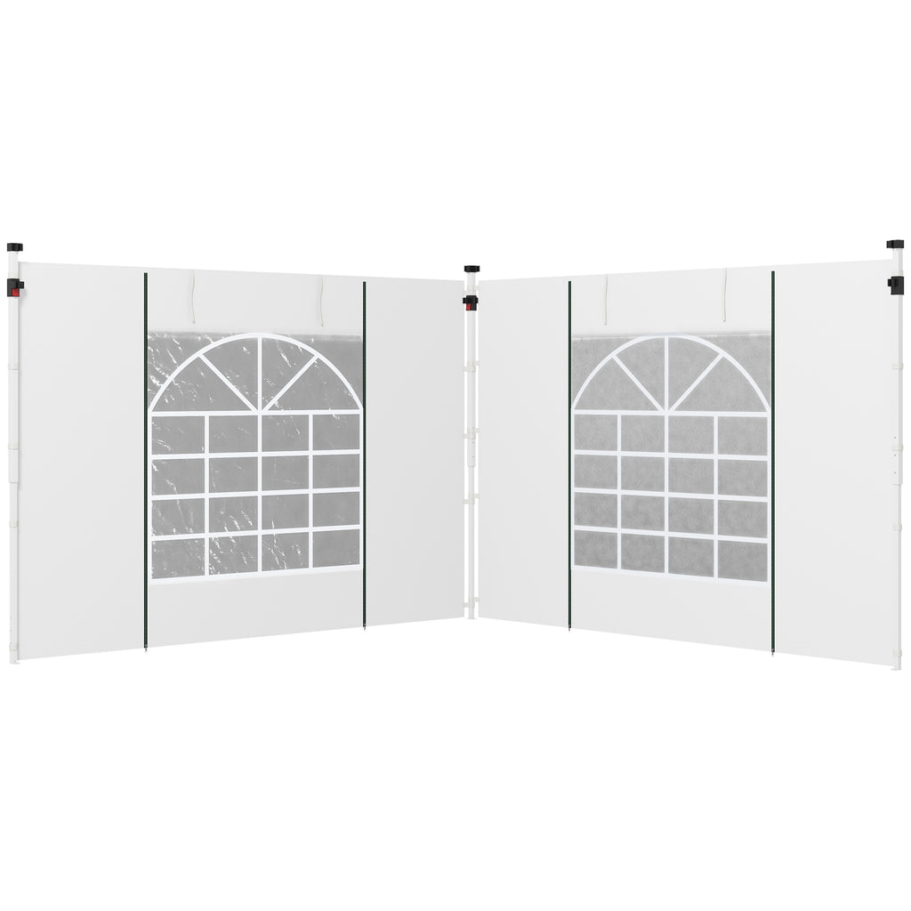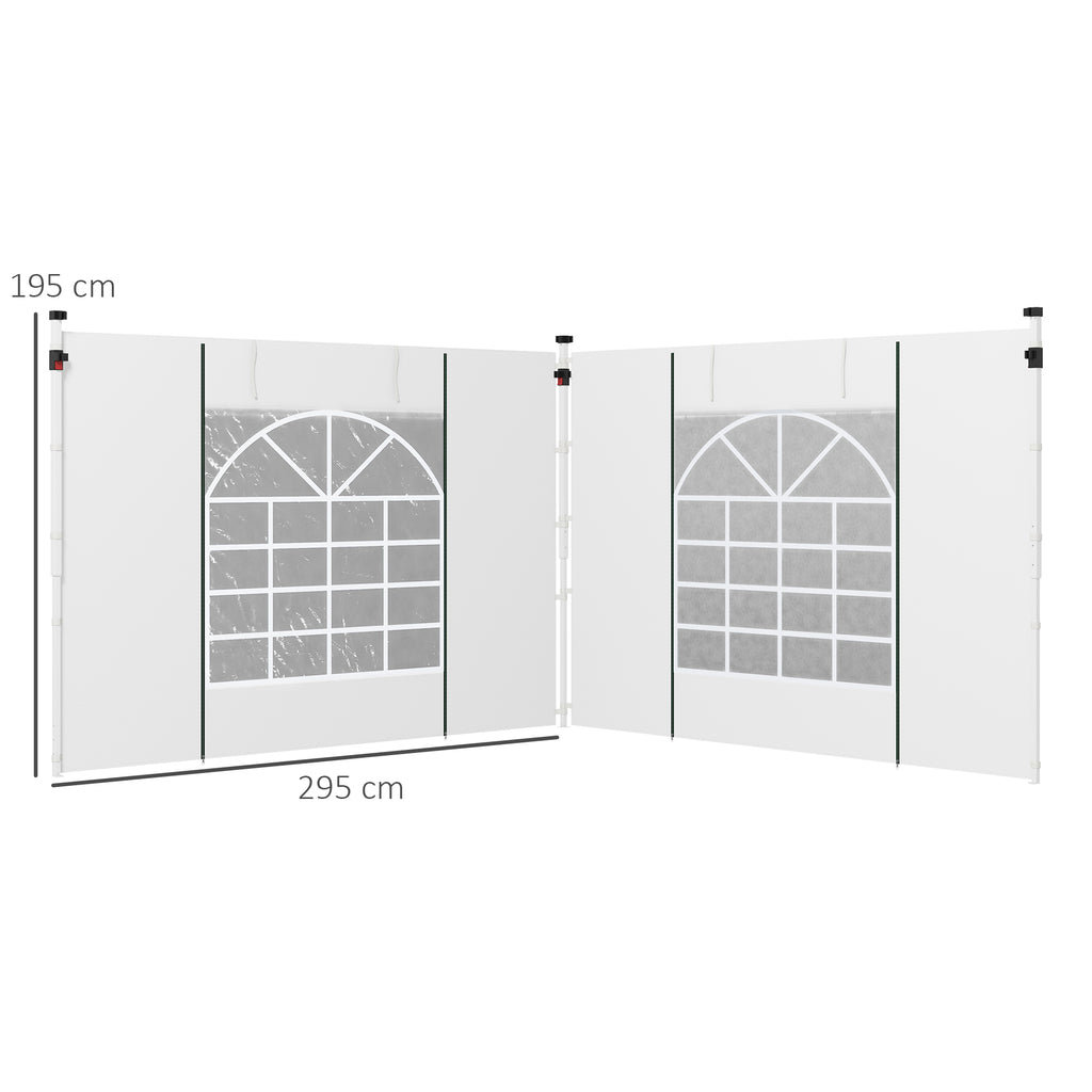 Hauchen Sie Ihrem Gartenpavillon mit den Outsunny Seitenwänden für Pavillon neues Leben ein! Dieses Set aus zwei Seitenwänden passt zu den meisten 3 x 3 m oder 3 x 6 m Faltpavillons und besteht aus strapazierfähigem Oxfordpolyester. Mit doppellagigen, aufrollbaren Fenstern für Licht und Reißverschlusstüren für einen einfachen Zugang. Dank der speziellen Riemen wird das Anbringen zum Kinderspiel. Beachten Sie, dass nur die Seitenwände enthalten sind: Der Pavillonrahmen ist nicht inbegriffen.