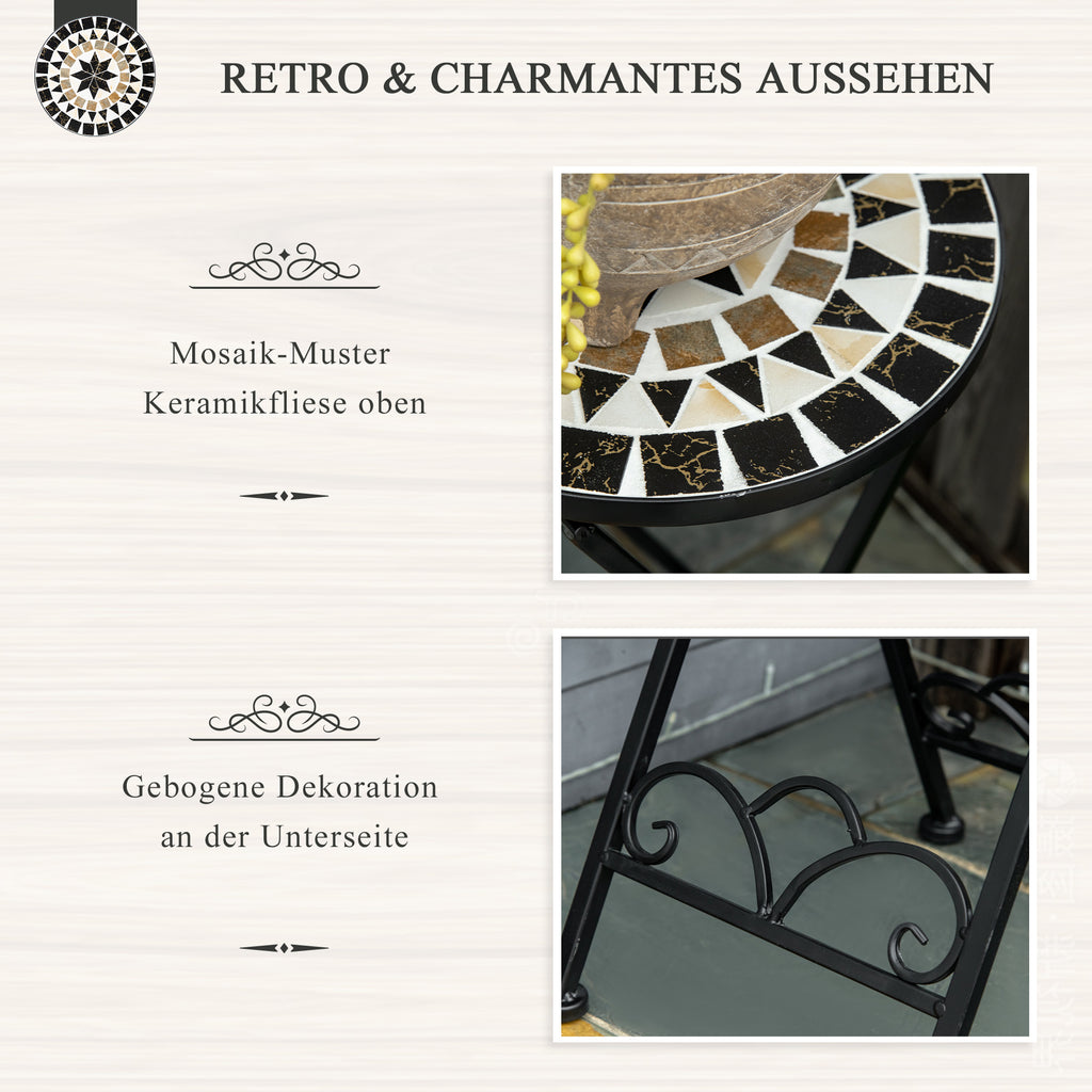 • RETRO-LOOK: Im Boden des Pflanzenständers ist dekorative Keramik eingebettet, die ihn zu einem charaktervollen Einrichtungsstück für Ihren Garten, Terrasse oder Innenräume macht.