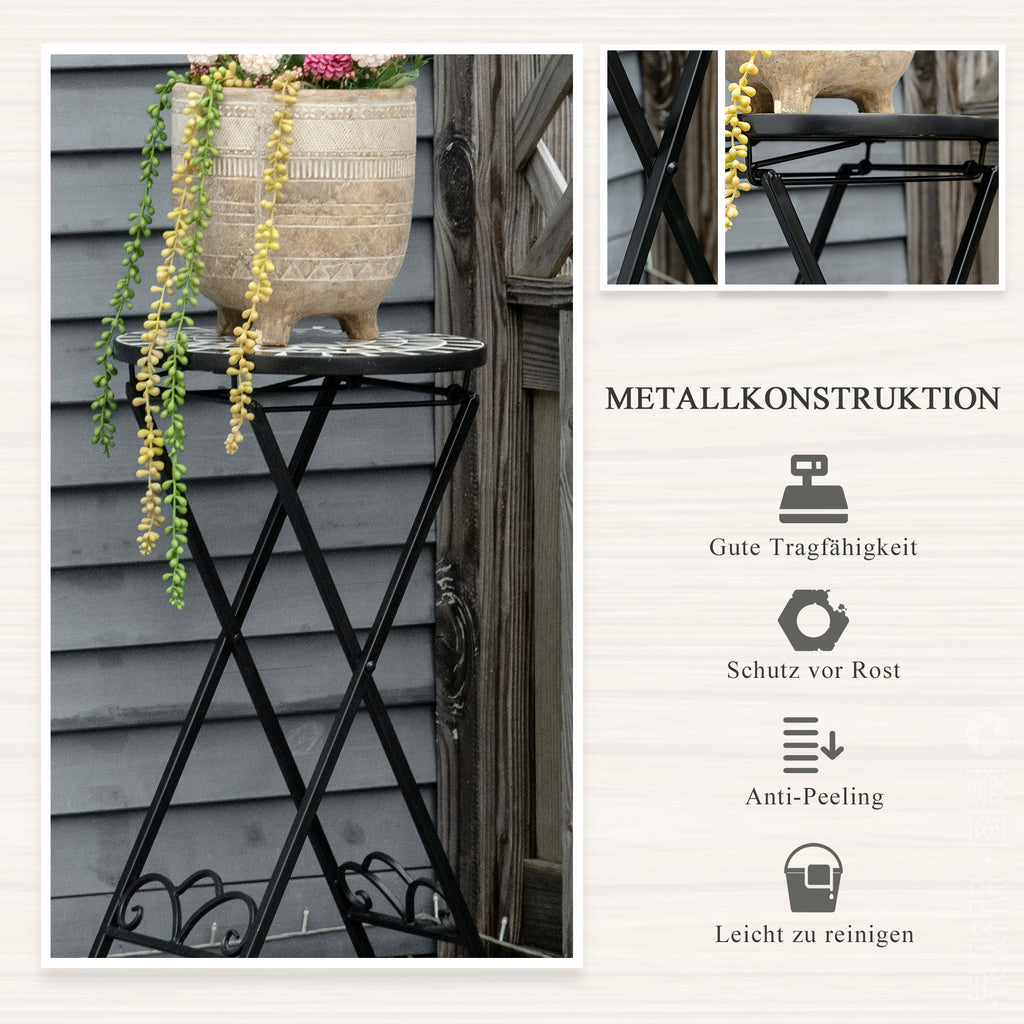 Outsunny Pflanzenständer Ø36 x 67 cm Blumenständer Pflanzenhalter klappbar rund für Balkon Steinmosaik Garten Indoor Outdoor mehrfarbrig