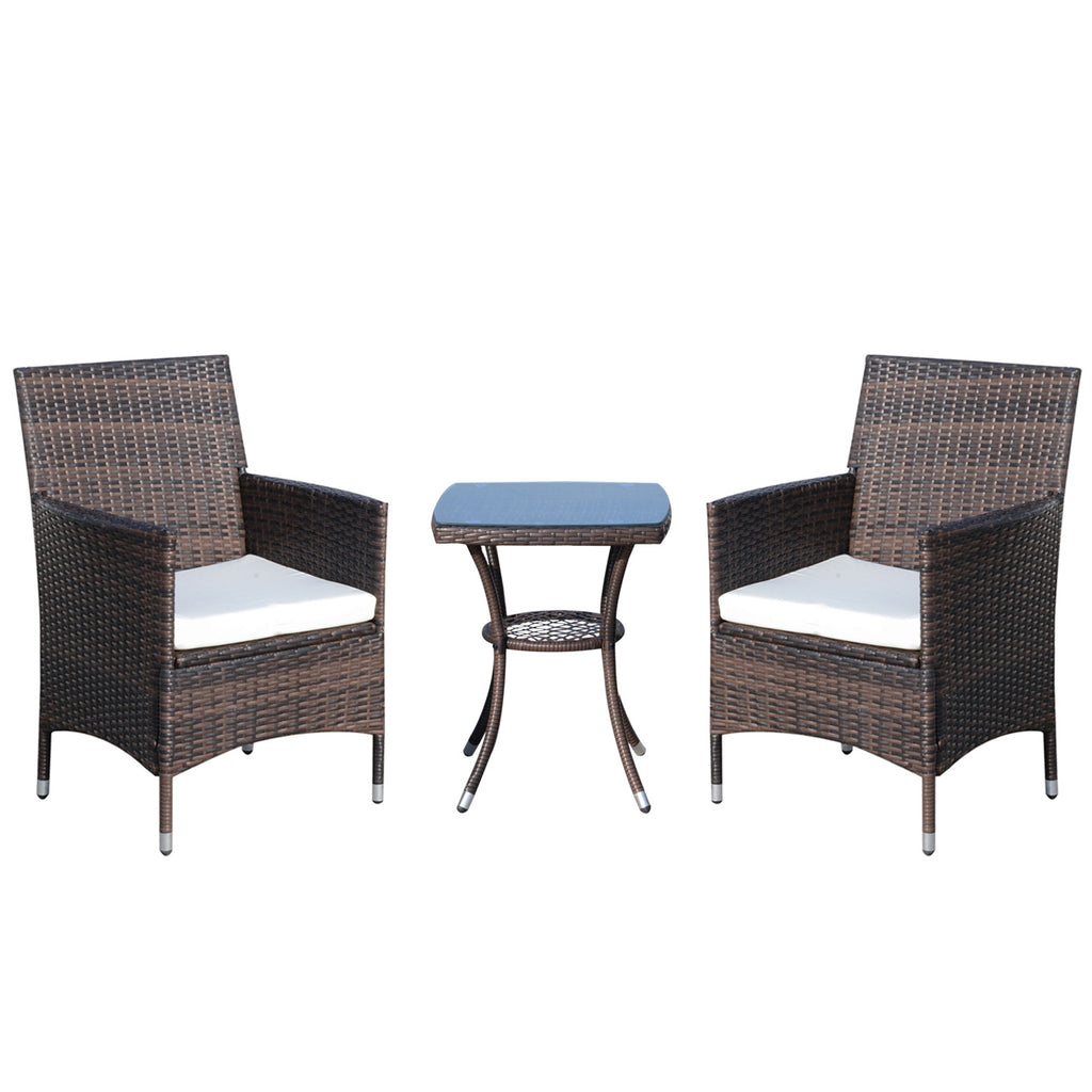 Outsunny Polyrattan Gartenmöbel Set, Outdoor Lounge Balkonmöbel für 2 Personen, 3-teilig Sitzgruppe, 2 Stühle, Tisch Sitzkissen, Gartenlounge für Garten, Terrasse, Balkon, Braun