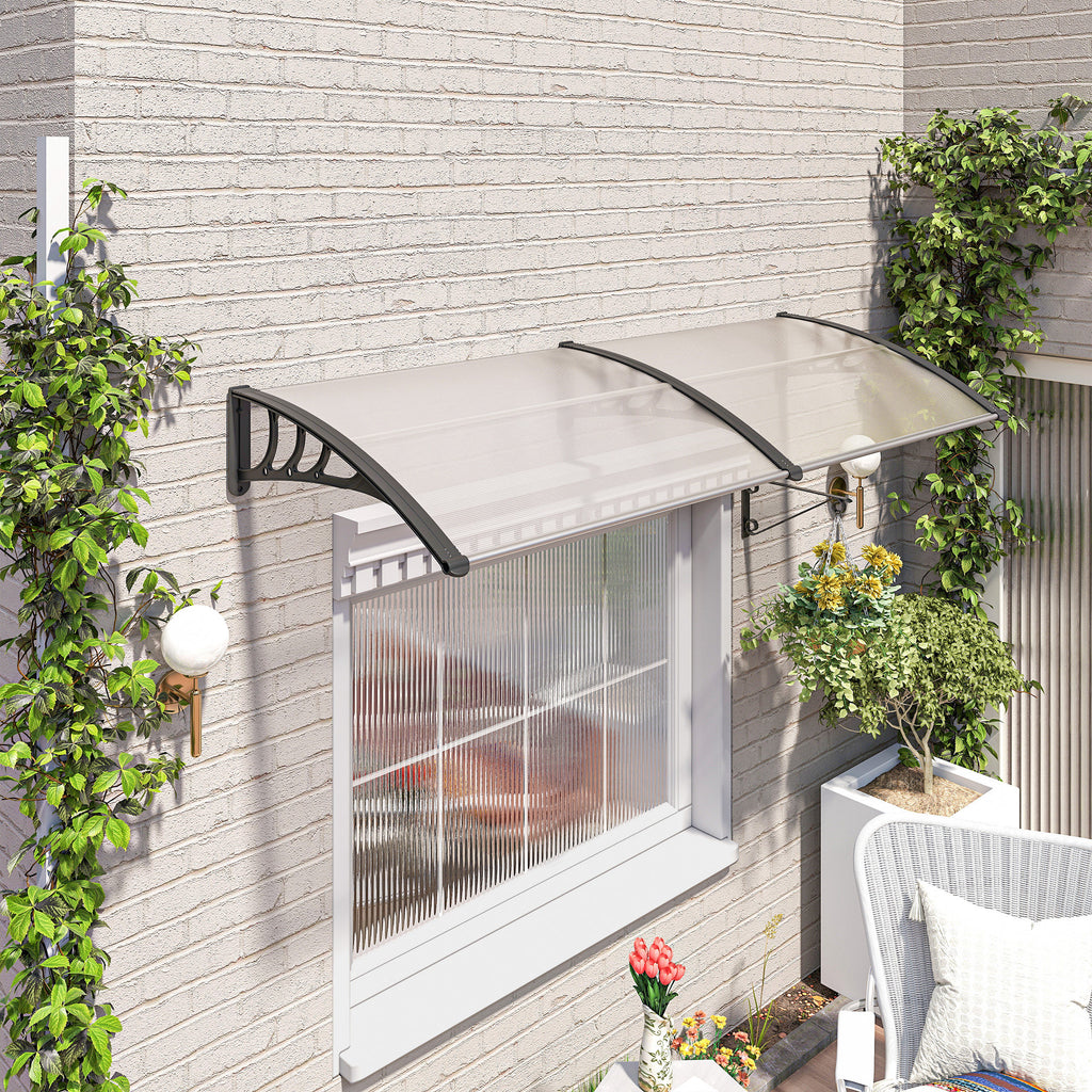Halten Sie das ganze Jahr über das Wetter von Ihren Türen und Fenstern fern - mit diesem klaren Doppelvordach für den Außenbereich von Outsunny. Das geschwungene Design bietet Ihnen einen besseren Schutz. Das Vordach verfügt an den Enden über zwei starre Kunststoffbügel zur Verbindung mit der Wand, wobei leichte Aluminiumstangen die Enden mit den Polycarbonatplatten verbinden, um Sie mühelos vor den Elementen zu schützen. Mit einer UV-Beschichtung auf der Oberseite, die schädliche UV-Strahlen abschirmt und gleichzeitig dazu beiträgt, dass Ihr Haus nicht zu heiß wird, wenn die Sonne hineinscheint.