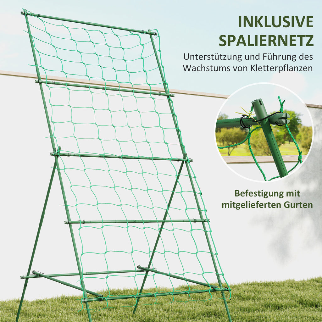 Gestalten Sie Ihren Garten neu mit dem Outsunny A-förmigen Rosenspalier, das perfekte Unterstützung für Ihre kletternden Gemüse und Pflanzen bietet. Egal, ob Gurken oder andere Kletterpflanzen, justieren Sie die Stufen entsprechend ihrem Wachstum und nutzen Sie das beigelegte Netz für beste Stabilität. Aus wetterfestem, rostfreiem Metall gefertigt, garantiert dieses Spalier, dass Ihre Pflanzen stilvoll aufblühen!