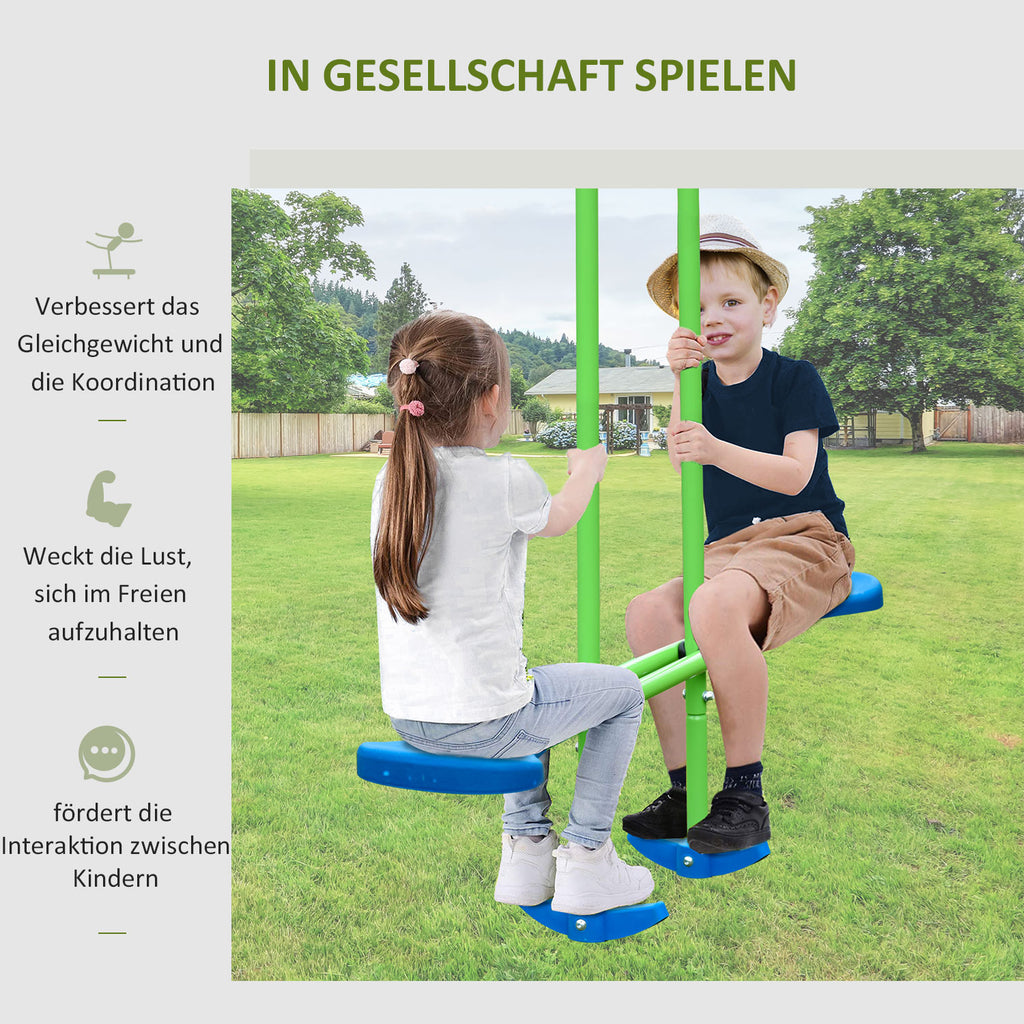 Vermissen Ihre Kinder den Spielplatzspaß? Die Outsunny Kinderschaukel ermöglicht mehr Outdoor-Zeit und fördert spielerisch die motorische Entwicklung. Mit verstellbaren Seilen passen Sie die Schaukelsitze individuell an, um optimalen Komfort und Freude zu gewährleisten. Diese Kinderschaukel für draußen beinhaltet zwei Sitze und eine Gleitvorrichtung und bietet Platz für drei Kinder, die gemeinsam Spaß haben können.