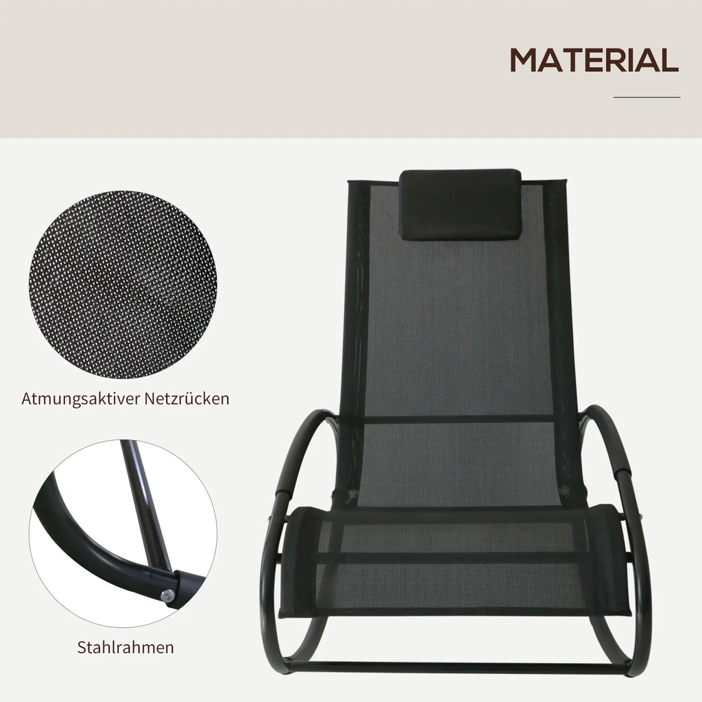 Unser Garten Schaukelstuhl von Outsunny ist für besonders gemütliche Momente gemacht. Schnappen Sie sich ein gutes Buch oder genießen Sie einfach den Moment, während Sie seicht vor und zurück schaukeln. Das robuste Stahlgestell ist super stabil. Die Sitzfläche und Rückenlehne sind aus atmungsaktivem Texteline gefertigt und ein Kopfkissen ist auch inklusive, damit Sie immer bequem sitzen. Elegantes Design, hoher Komfort und tolle Verarbeitung: Mit Ihrem neuen Schaukelstuhl kommt die Erholung direkt zu Ihnen nach Hause.