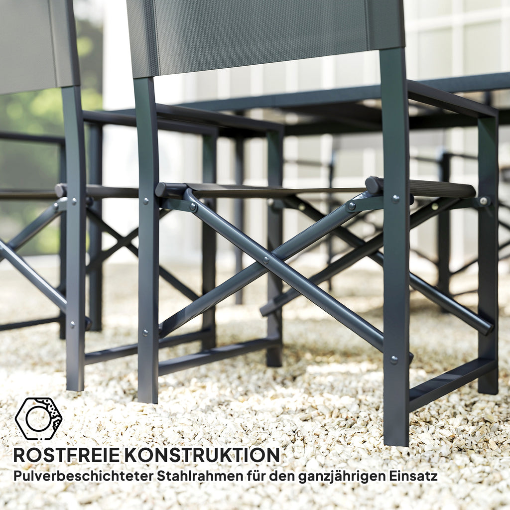 - Stühle der Gartengarnitur lassen sich zum platzsparenden Verstauen zusammenklappen