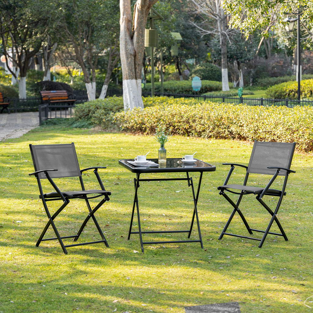 - Dreiteiliges Bistro-Set, bestehend aus einem quadratischen Tisch und zwei passenden Stühlen