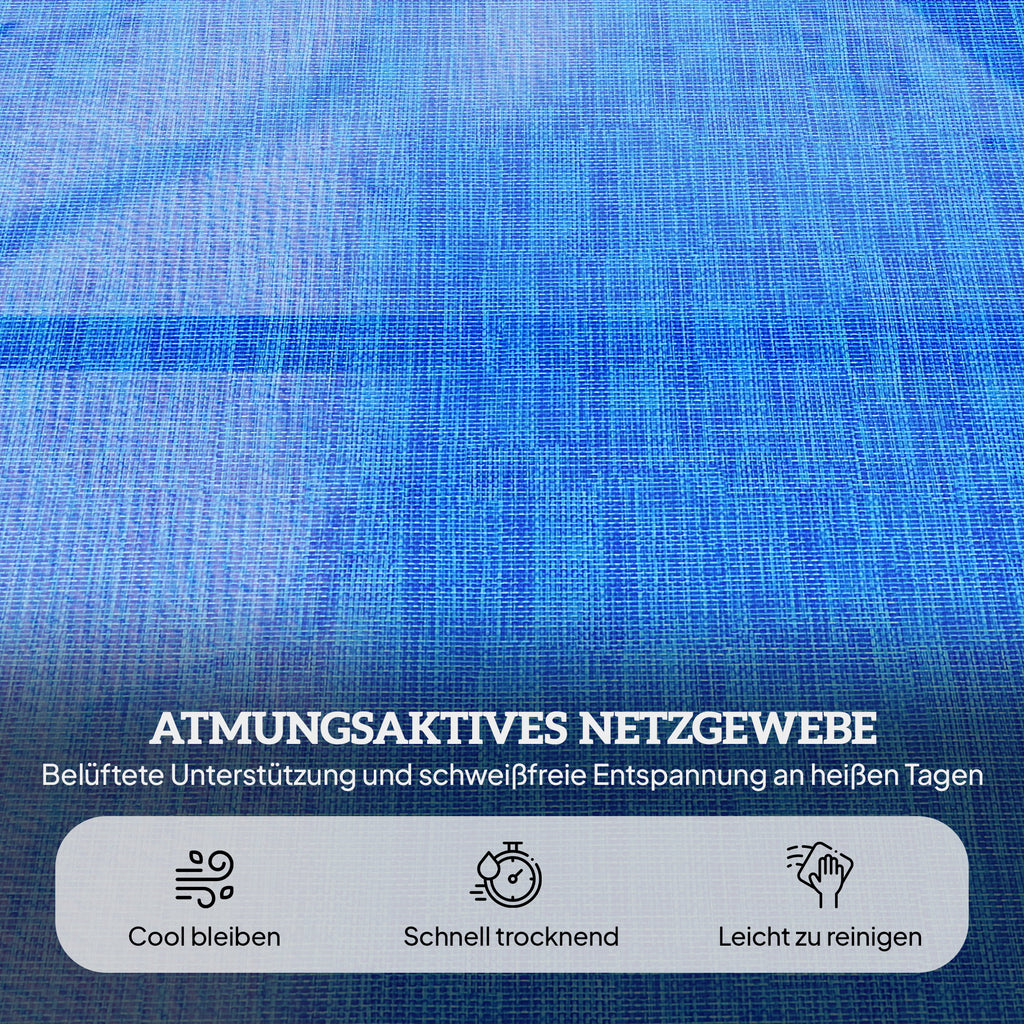 Möchten Sie sich den Komfort Ihres Urlaubsortes nach Hause holen? Dann sind Sie jetzt einen Schritt weiter. Am Strand, auf dem Campingplatz oder am Schwimmbad bietet die klappbare Gartenliege Outsunny einen bequemen und funktionellen Liegeplatz. Für einen angenehmen Sitzkomfort ist die Rückenlehne der Balkonliege in vier Positionen verstellbar. Auch nach dem Schwimmen ist die Netzoberfläche der Saunaliege wasserabweisend und trocknet schnell.