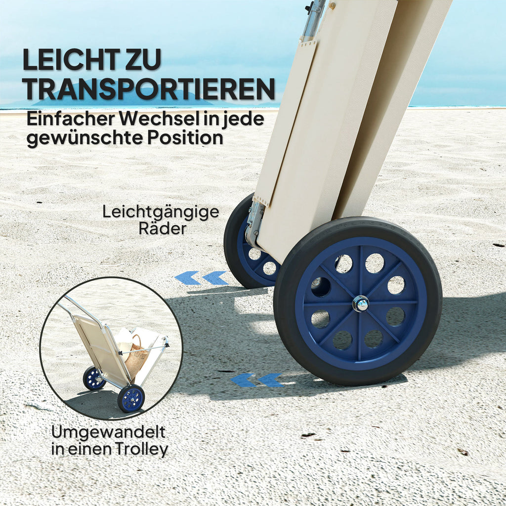 - Zwei Räder der Sonnenliege ermöglichen einfache Transportierung und Handhabung