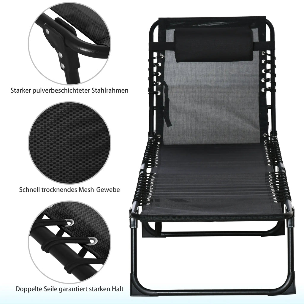 Entspannen Sie sich im Garten, Park oder am Strand auf dieser modernen Sonnenliege von Outsunny! Dank des ergonomischen Designs und der bequemen Liegefläche können Sie komfortabel entspannen. Durch die verstellbare Rückenlehne und Fußstütze finden Sie schnell die optimale Liegeposition, um bequem ein Buch zu lesen oder ein erholsames Sonnenbad zu nehmen. Die Lounge ist leicht, zusammenklappbar und kann überallhin mitgenommen werden.