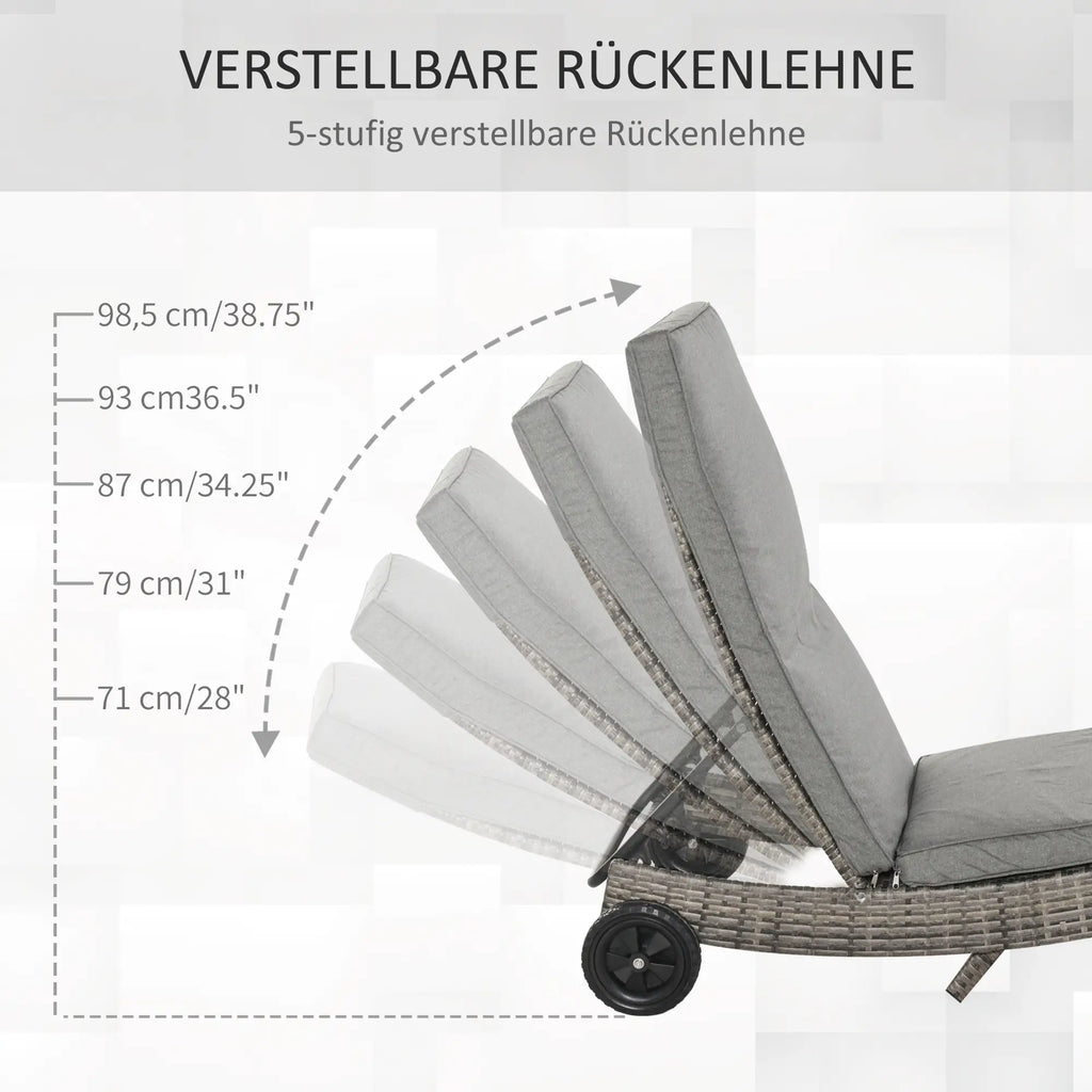 Diese moderne, geschmackvolle Gartenliege von Outsunny wird Ihr Außenambiente um eine niveauvolle Note und eine herausragend bequeme Sitzmöglichkeit bereichern. Der Liegestuhl ist wellenförmig geschwungen und großzügig gepolstert, sodass Sie sich fallenlassen und herausragenden Liegekomfort genießen können. Auch die praktische Seite kommt nicht zu kurz: Die Rückenlehne ist in 5 Stufen verstellbar und lässt Sie schnell die gewünschte Position finden. Erholsamer kann man im Sommer nicht liegen!