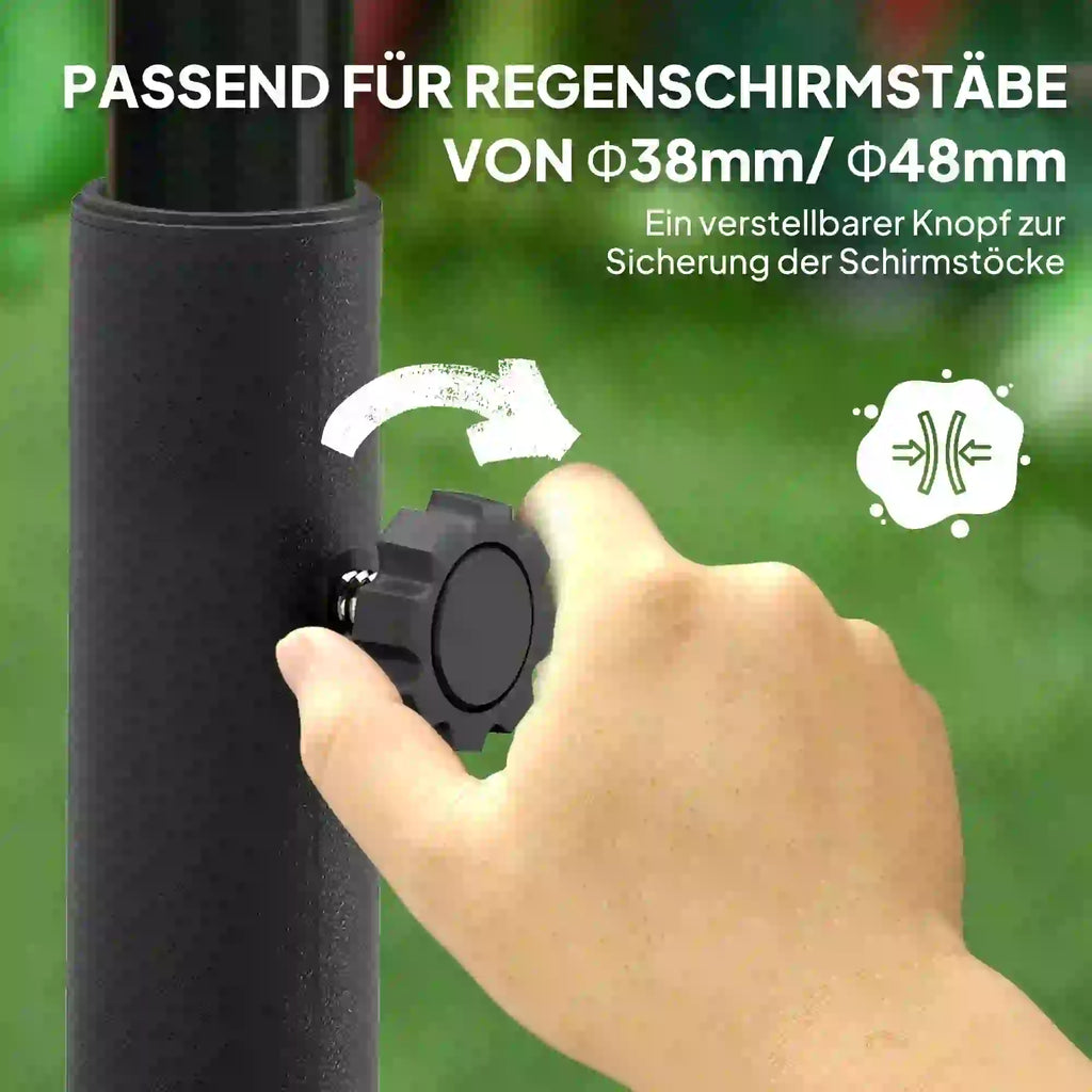 - ✔ Geeignet für Gartenschirme mit einem Durchmesser unter 2,6 m und einer Stangengröße von 38 mm oder 48 mm