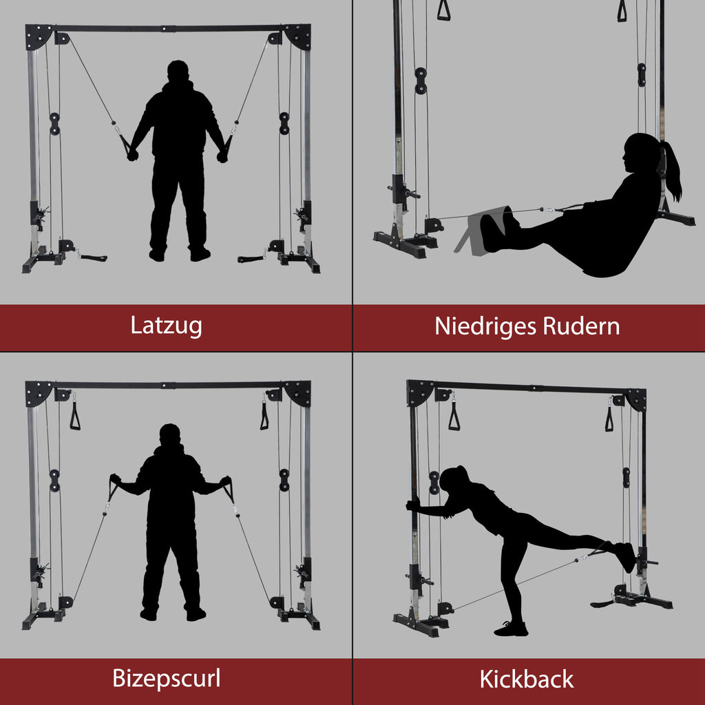 • 4 Griffe: Nutzen Sie die Griffe der Kraftstation, um zahlreiche Muskelgruppen zu beanspruchen. Ideal für das Training von Armen, Schultern, Brust und Rücken.