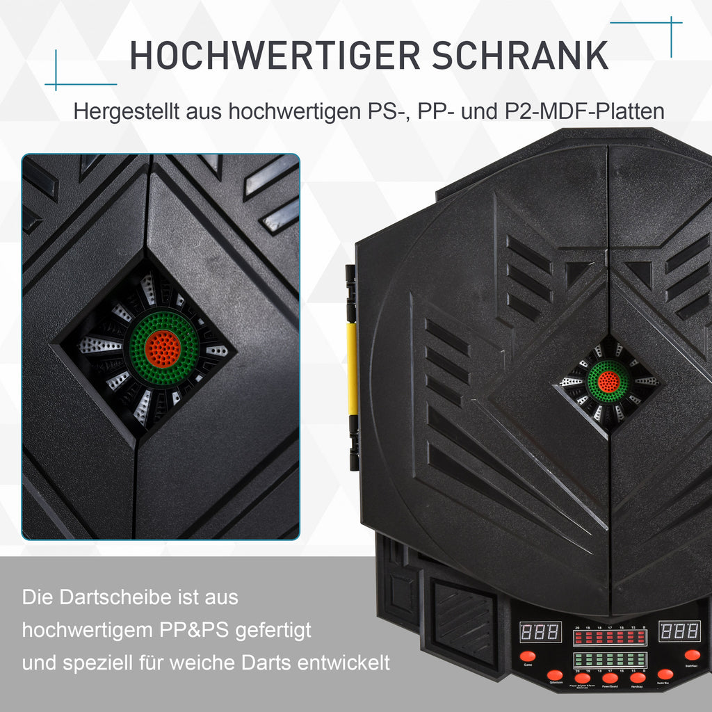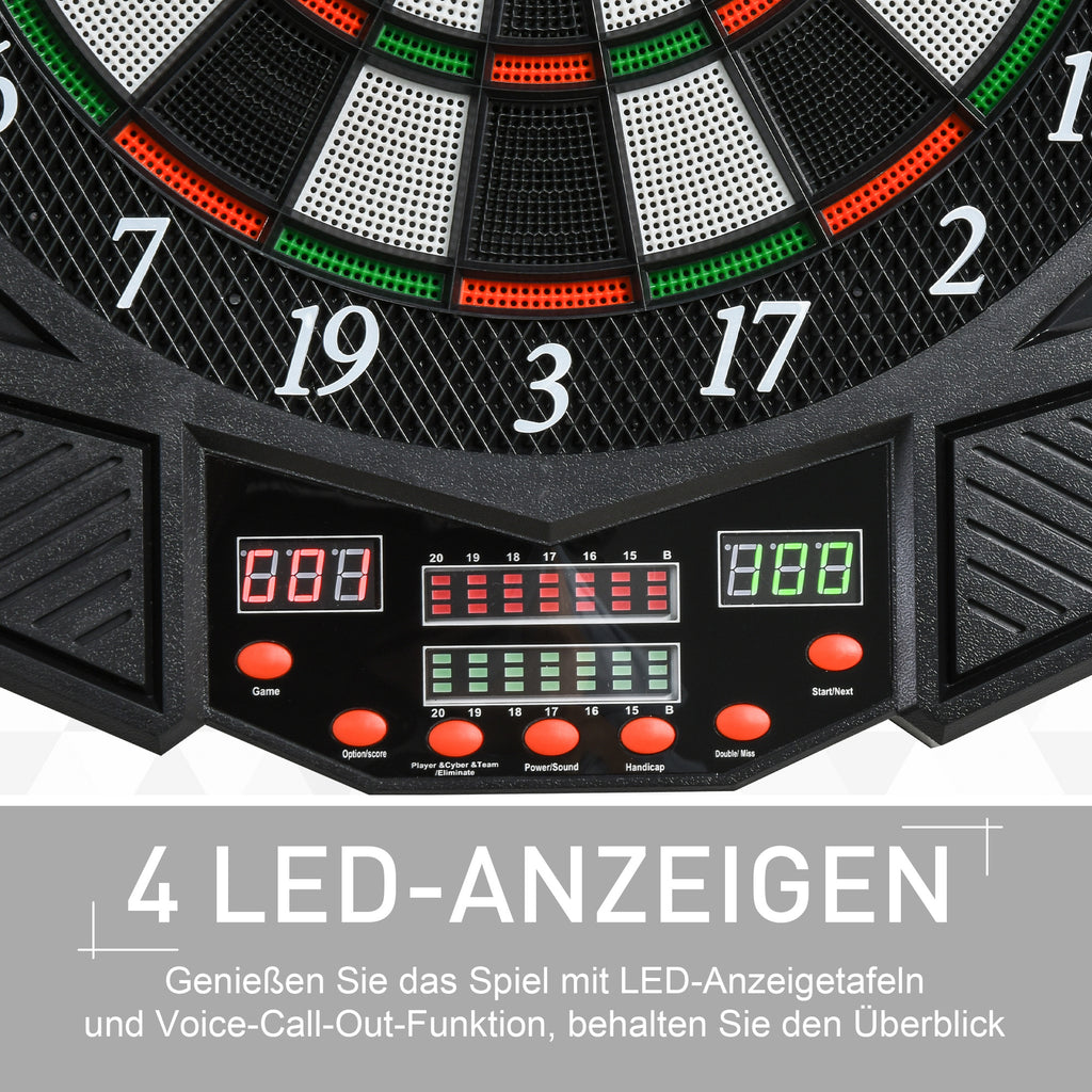 Darten Sie wie die Profis Zuhause! Mit Ihrem elektronischen Dartspiel sind Spaß und Spannung garantiert. Wählen Sie zwischen 27 Spielen und 216 Spielvariationen aus, inklusive Turniermodus. Interaktive Soundeffekte und Sprachausgabe lassen Sie immer wissen wo Sie stehen. Holen Sie sich Dartgenuss nach Hause. Ideal für den Garten, den Partykeller oder als Geschenk. Dartboard für bis zu 8 Spieler!