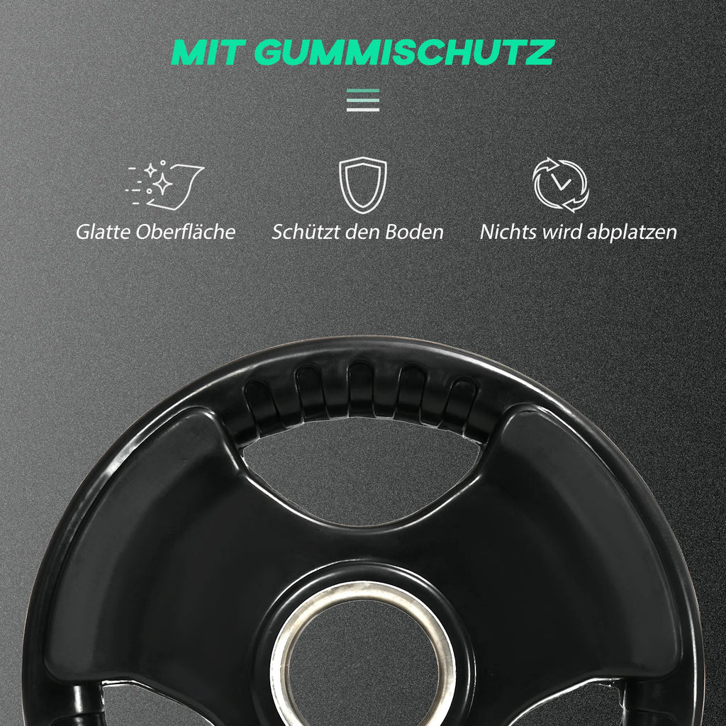 • Gummimantel: Die Hantelscheiben besitzen eine robuste Gummioberfläche, die Ihnen nicht nur mehr Grip verleiht, sondern auch den Boden vor Schäden schützt.