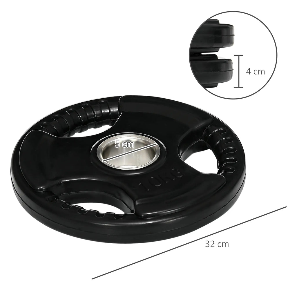 SPORTNOW Hantelscheibe, 2er-Set, 10 kg pro Scheibe, drei Griffe, bodenschonender Gummimantel, Metall