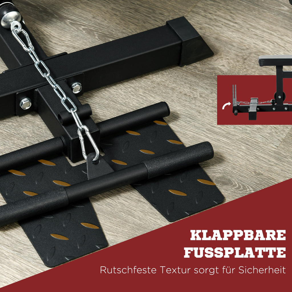 Stärken Sie sich mit der SPORTNOW Latzugstation für Zuhause, ideal für das Oberkörpertraining. Trainieren Sie mit der Low-Row-Zugvorrichtung Schultern, Rücken und Brust durch diverse Übungen. Ein ergonomischer Griff sowie verstellbare Höhe und Winkel der Latzugstange garantieren sicheres und angenehmes Heben. Wählen Sie mit verstellbaren Gewichtsplatten Ihr Startgewicht und arbeiten Sie sich bis zu 50 kg hoch. Ihr eigener Bereich, Ihre Zeit, Ihr Fitnessstudio – bleiben Sie auch zuhause aktiv!