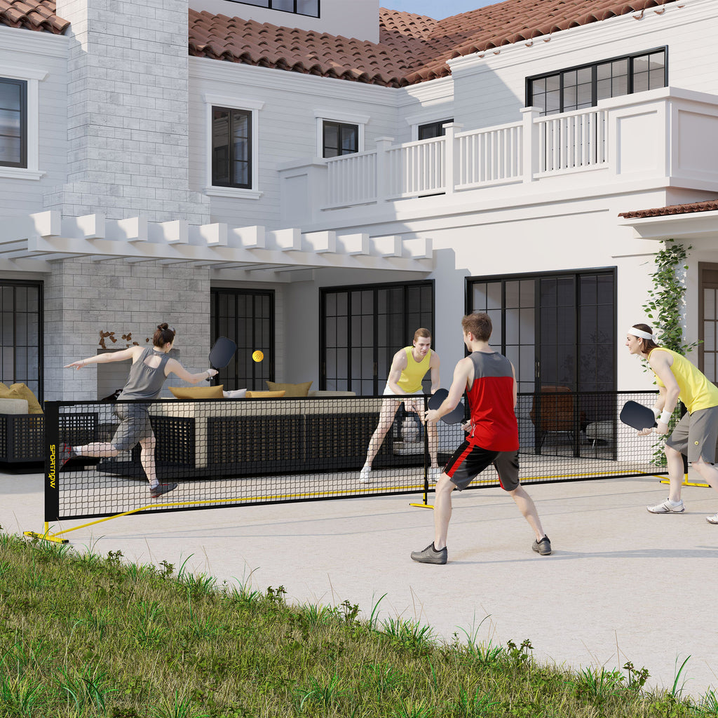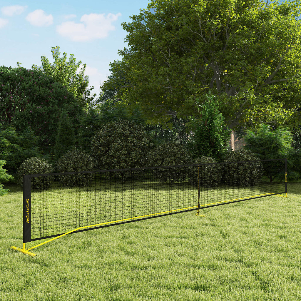Bringen Sie Ihr Pickleball-Spiel mit diesem SPORTNOW Pickleball-Netz nach Regulierungsgröße überall hin. Wählen Sie zwischen Vollfeld für Profis und Halbfeld für entspannte Spiele. Der stabile Metallrahmen mit verstärkten Rohren und Mittelstütze sorgt für Stabilität und schützt vor Durchhängen. Das strapazierfähige Netz mit anpassbaren Schnellverschlüssen garantiert optimale Spannung. Mit der robusten Tragetasche lässt es sich einfach transportieren und schnell aufbauen sofortiger Spielspaß garantiert!