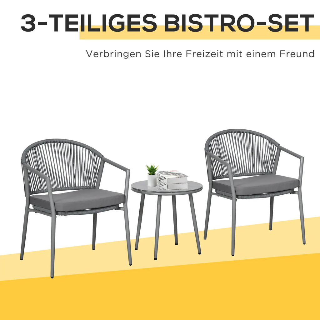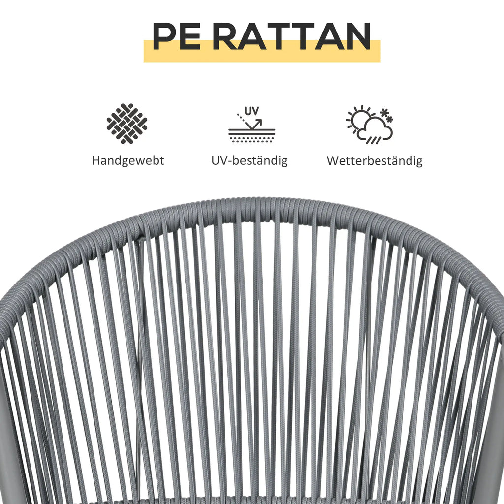 Verwandeln Sie Ihren Garten in eine gemütliche Oase mit dem Outsunny Rattan Möbel-Set. Das Set besteht aus zwei dekorativen Terrassenstühlen, die mit üppig gepolsterten Sitzkissen für höchsten Komfort ausgestattet sind, sowie einem eleganten, runden Beistelltisch mit schöner Glastischplatte. Der pulverbeschichtete Stahlrahmen und die rutschfesten Füße bieten jederzeit optimalen Halt, damit Sie unbeschwert und in vollen Zügen die frische Luft und sanfte Sommerstrahlen genießen können.
